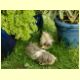 Rasenmähen gestaltete sich deshalb immer aufwendig. Bis Klaus eine geniale Idee hatte: Den Meerschweinauslauf immer um die Kübel herum. Meerschweine als Helfer, nicht mehr Kübel versetzen sondern sie "mähen" lassen.