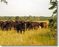 Finally, he woke up and we drove on to the northern track. In the first few minutes we met a mother elephant with her baby. This was quite far so we drove on. After another few minutes we saw a herd of buffaloes. Then we saw 3 herds of Ugandan kob, then some water buck, and then some mongoose. Then we drove back in a circle. On our way back we met some other people with a guide. After that we also met the teachers. They had already packed up and were on their way to Lake Bunyonyi.